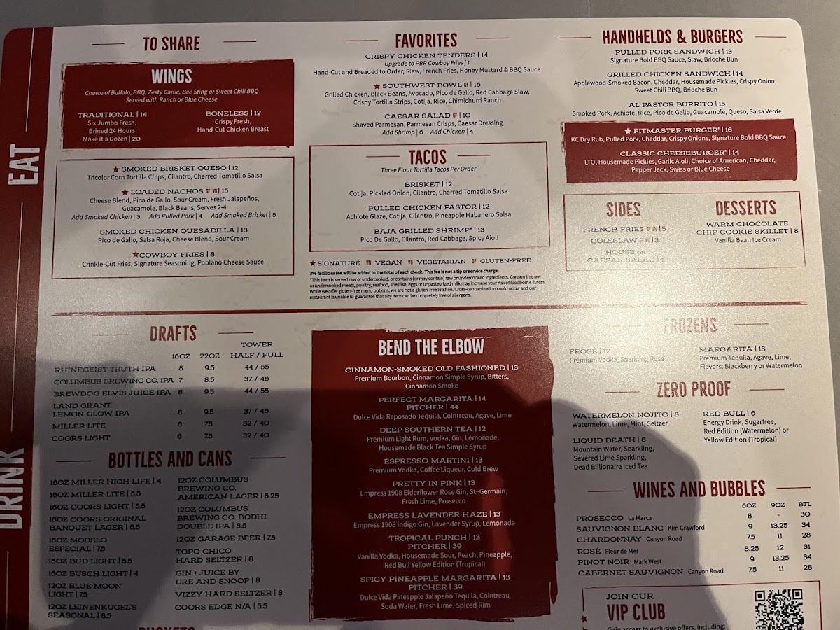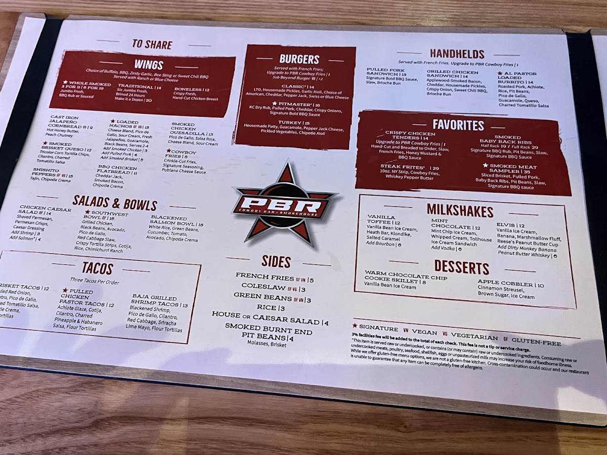 PBR Cowboy Bar Smokehouse Menu